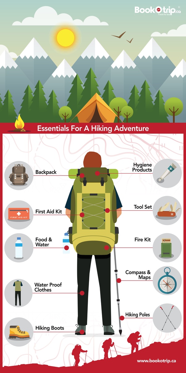 Oboz Firebrand II Low Leather httpsamznto2DGVRin 3. 4222020 The most essential thing to bring with you while hiking is a POSITIVE MENTAL ATTITUDE. Map Sunglasses and Sunscreen Compass Extra Clothing Extra Food Knife First aid box Firestarter whistle extra waterhydration properly. Survivor Hydration Reservoir 2 Pack 3 Liters Each httpsamznto2zWqsWT 2.